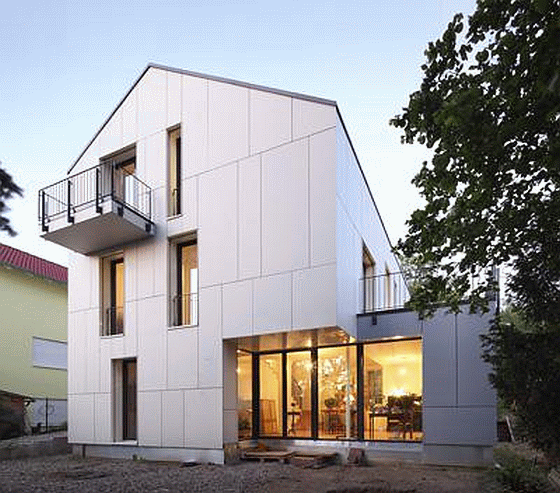 Das in Darmstadt ansässige Büro ee concept gmbh hat mit dem Effizienzhaus Plus – M. einen Beitrag im Sektor Einfamilienhausbau zum diesjährigen Solarpreis geleistet. Das an der Bergstraße gelegene Haus in Passivhausbauweise, erwirtschaftet Dank der dachintegrierten Photovoltaikanlage einen jährlichen Überschuss von 500 kWh/a (Jahresbilanz – berücksichtigte Energiebedarfe: Heizen, Warmwasser, Kühlen, Lüften, Beleuchtung, Haushaltsstrom). Hinzu kommt eine besonders auf baubiologische Effekte abzielende Planung, die den Schadstoffeintrag in das Gebäude deutlich reduziert.